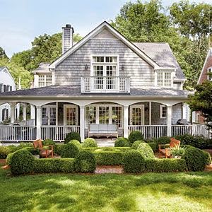 I love an exterior with a huge porch, gables, shingles, shutters, etc.
