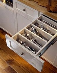 I think this silverware drawer is genius!!  I will definitely be doing this in the next house!!  I hate those plastic drawer dividers, they are never big enough for all my silverware.  This is the hardware I want on my cabinets.  I want file tab drawer pulls on all my drawers.