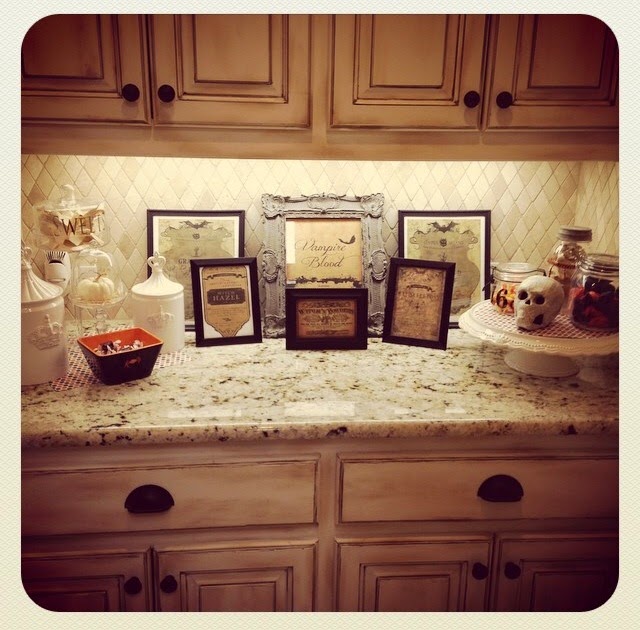 So, I headed off to Dollar Tree to get some cheap frames and went online to get some free art and turned my butler’s pantry into a candy bar/potion/poison bar