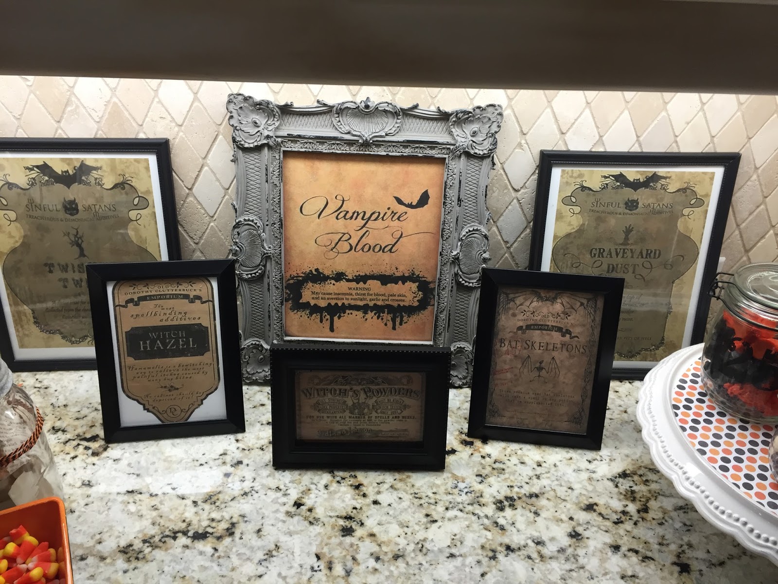 I turned our Butler’s Pantry into a Potion/candy bar. Avery loves this every year. Click HERE to get details on how to get this look!