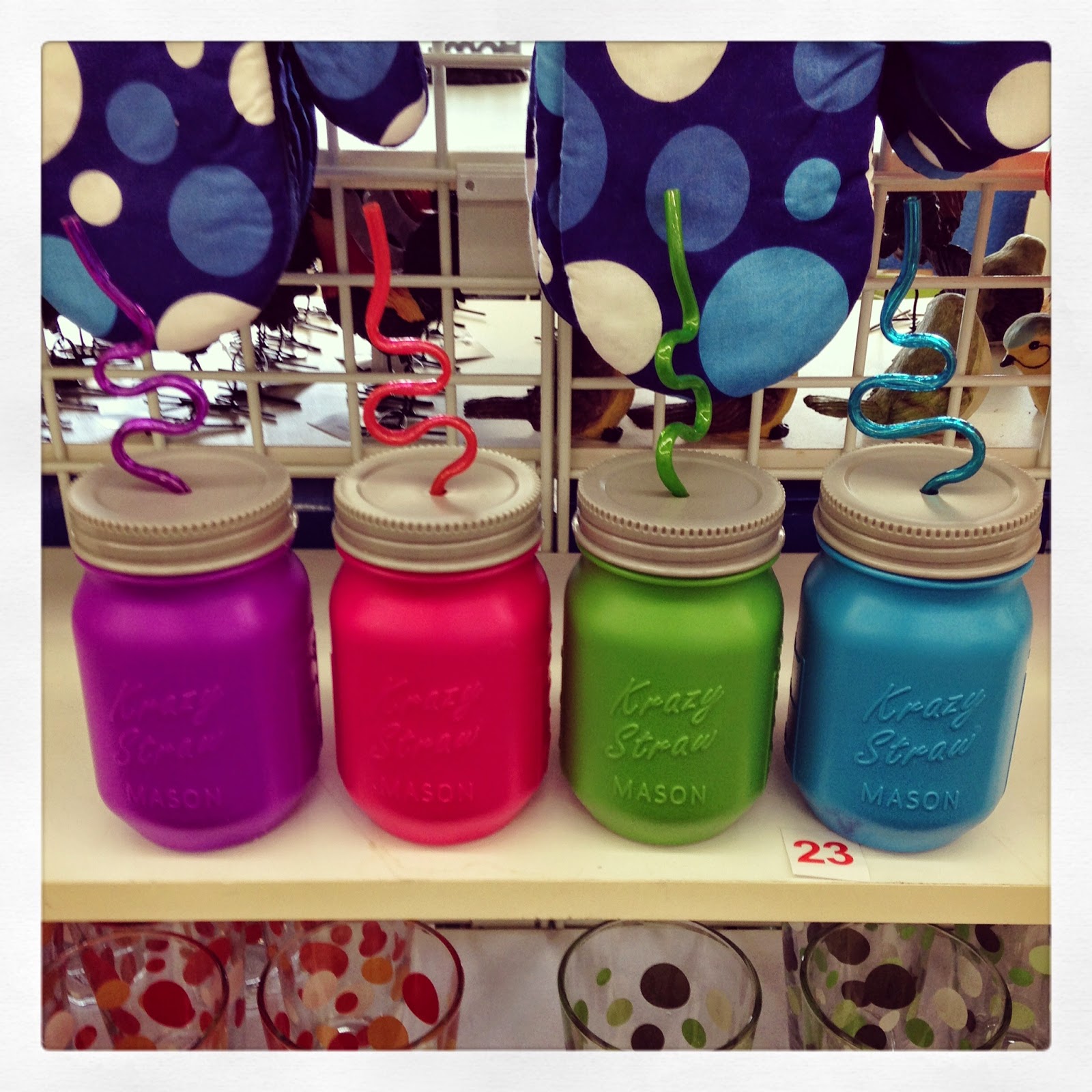 Colorful plastic mason jar tumblers with adorable striped straws…YES please!!  I bought these in every color and they are only $4.95!!