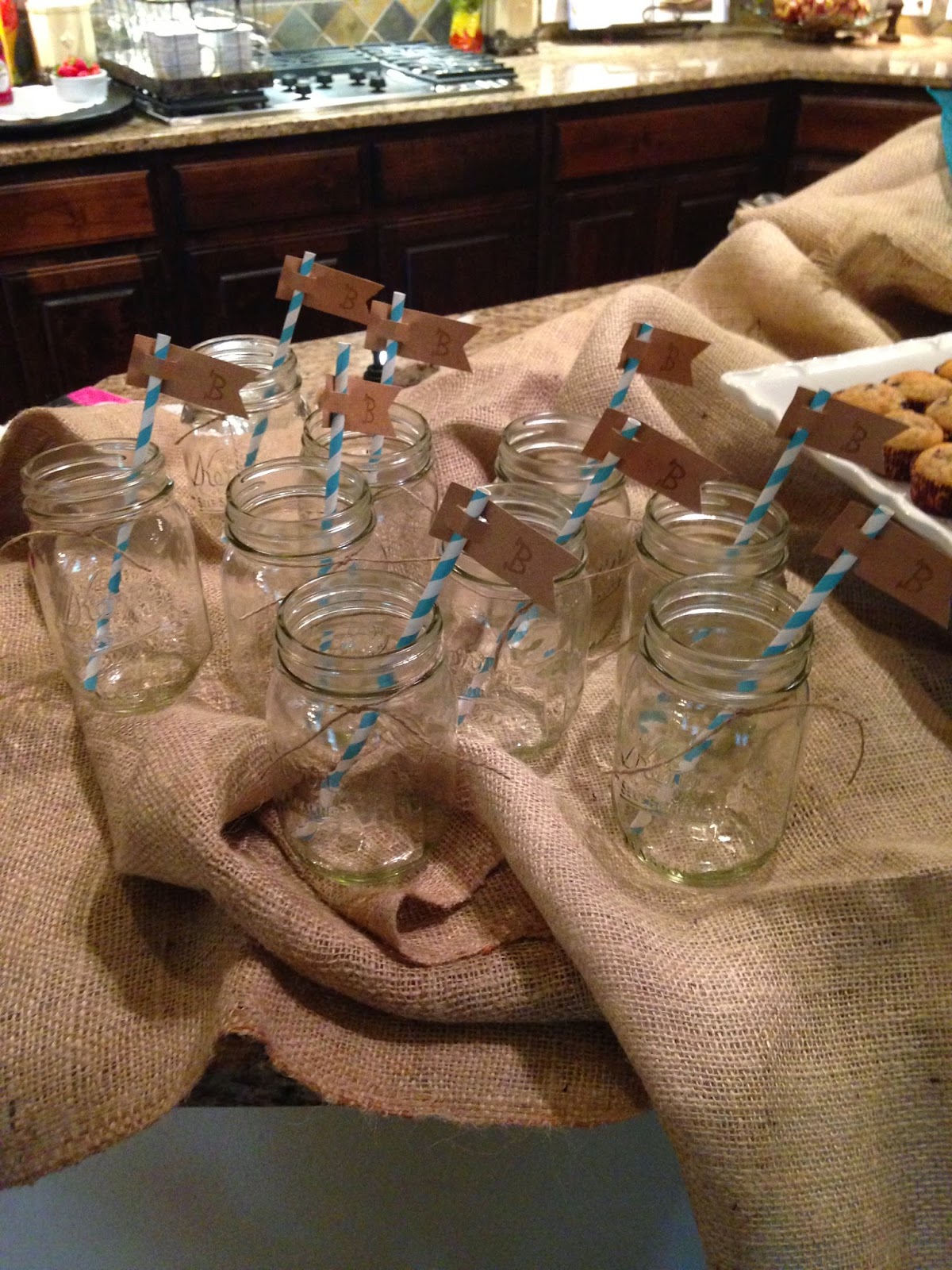 Here was the food station.  They covered the island with burlap and had all kinds of yummy food!
